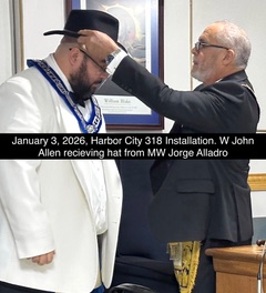 WM John Allen receiving his hat from MW Jorge Aladro, Installing Officer